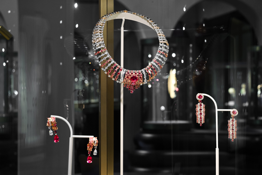 展区溯源PIAGET 伯爵历史上最具突破性的创作之一—— 1969 年问世的“21 世纪系列”。 该系列以其前所未有的设计语言,打破珠宝与腕表的界限,重新定义了高级珠宝的佩戴方式。 如今,参观者不仅能在此欣赏到“Shapes of Extraleganza 奢雅之形”系列的全新力作,还能一览“Essence of Extraleganza 奢雅之源”系列的精妙设计与承袭自“21世纪系列”设计的标志性高级珠宝坠饰时计。其中,最引人瞩目的莫过于两件绽放耀目华彩的高级珠宝主题作品: Wave Illusion 光影幻彩主题作品以珍稀迷人的红色和橙粉色尖晶石与钻石之间的层叠镶嵌, 打造出如波浪般起伏的视觉幻象,流转出动态的光影韵律。